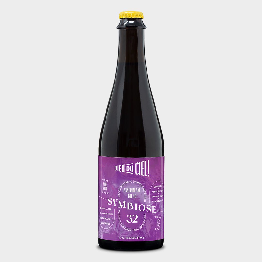 Assemblage de bières barriquées 7 mois en fût de brandy, macéré sur du marc de raisin Frontenac du vignoble Rivière du Chêne. Notes tanniques de vin et de petits fruits. Finale sèche.